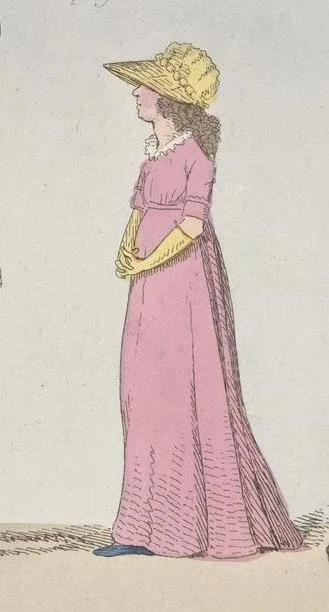 The high-waisted silhouette in this 1798 image by George Cruikshank . . BM.